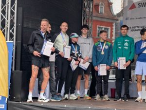 Jens finishte den Lauf als Dritter in seiner Altersklasse mit einer Zeit von 1:27:36 und durfte zur Altersklassensiegerehrung auf die Bühne.