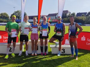 Die 10 km nahmen Jessica und ich in Angriff – ein toller Waldlauf entlang der Teiche im Südosten von Torgau. Jessica krönte diesen Lauf, der Balsam für die Seele war, mit dem Gesamtsieg über alle Frauen. Bei mir reichte es leider nur für die sogenannte „Holz-Medaille“ (vierter Platz).